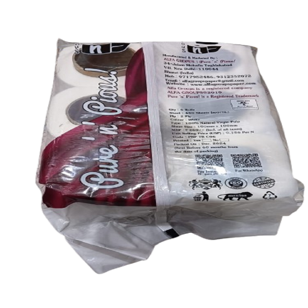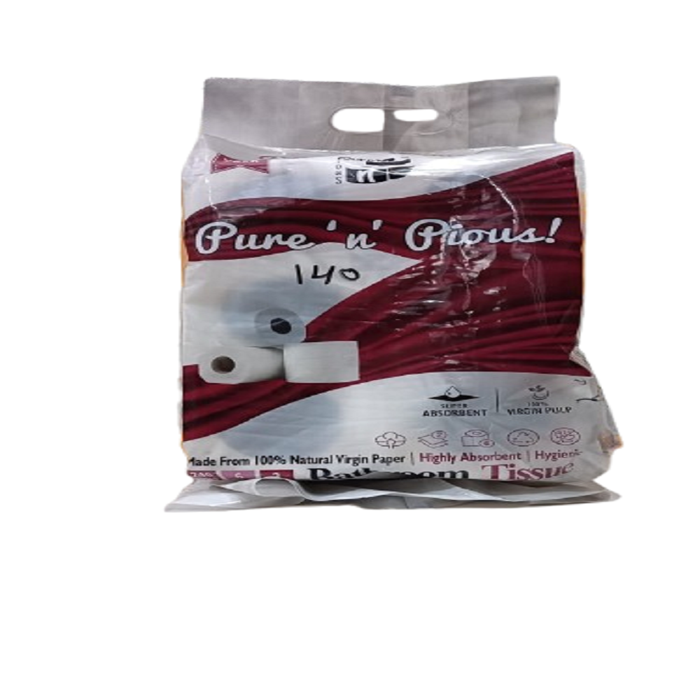 4 Ply Quality toilet tissue pack roll. Pure n pious