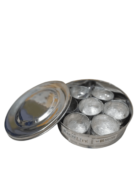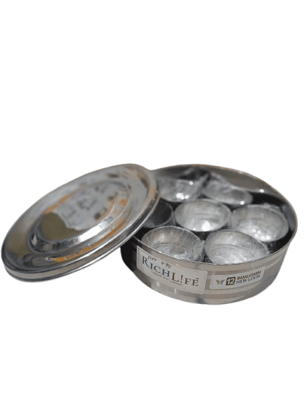 Description: 7 Section Stainless steel Round Multipurpose Spice Box. Heavy Duty Masala Box